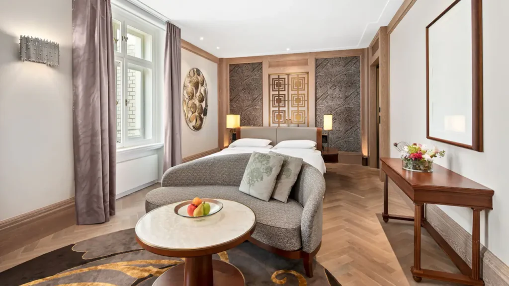 Vienna’s grand boulevards sparkle with lights each December, and the Wiener Christkindlmarkt at Rathausplatz is the crown jewel. Ice skating, live carols, and artisan gifts bring this imperial city to life. Nearby, the Park Hyatt Vienna sits in a former bank building, where Art Deco elegance meets modern opulence. Sip champagne by the fireplace or enjoy a holiday tasting menu at The Bank Brasserie & Bar—Viennese luxury at its finest.