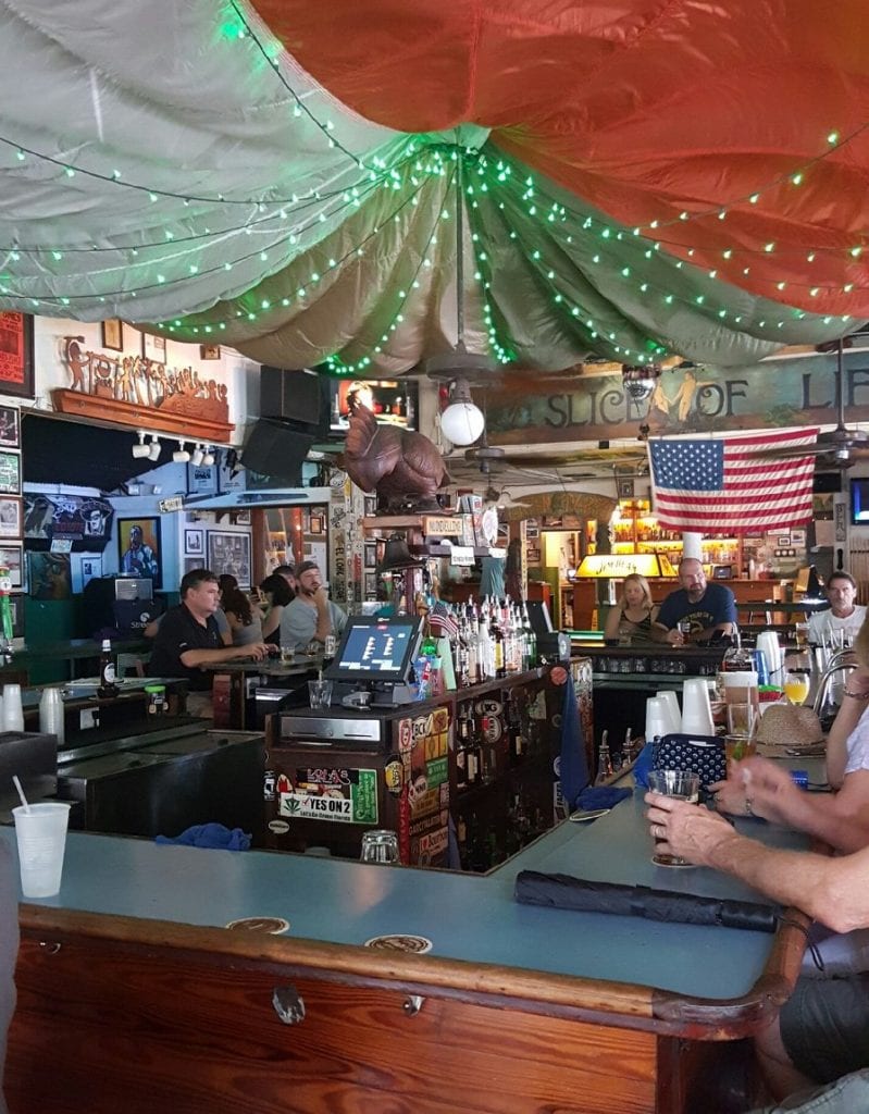 We watched it storm from our balcony until the sun went down and then we took a nap. When we woke up, we went down to locals favorite, Sugarloaf Lodge Tiki Bar located right on the lodge premises along with Sugarloaf Pizza restaurant. The restaurant was closed when we were there in February, but in December we picked up a pizza and ate it in the tiki bar and it was quite good! (There should have been a waitress at the tiki bar but she had gotten in a car accident recently). The drinks are strong and reasonably priced and there are trivia nights and live entertainment on the weekends. Even smaller places in the Florida Keys manage to hire live musicians, which is quite pleasant. I had an excellent Pina Colada and a very good Planter’s Punch and the even stronger Sugarloaf Punch. Good thing we were staying overnight at the lodge!