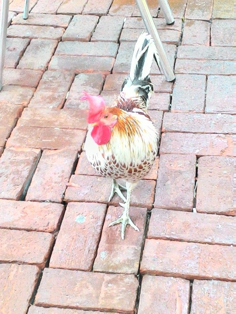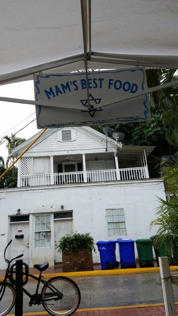 We walked across the street and purchased an umbrella at CVS, but they were out of rain ponchos (which we should have picked up on the way from Sugarloaf Key). Then we walked in search of Mam’s Best Food, a little restaurant, made up of a little kitchen, in a little house, with food served at a little counter, with a few tables set up outdoors under a canopy tent, which we huddled under to order and eat, because it was full on raining by the time we found it. Mam prepares authentic Middle Eastern food and the falafel was fantastic. I think she disapproved of my boyfriend’s choice of tuna salad. (He didn’t really look at the menu and was expecting fresh tuna or else he probably would have ordered something that Mam would have approved of.) We sat and talked with Mam’s son, who recommended The Porch (on Duval in a hotel) for a quiet drink amidst all the action and the Green Parrot Bar (around the corner from Mam’s) for a divey local’s joint. When we first got there, it was crowded with other patrons taking shelter under the canopy, but when our food was ready, we were the only ones, so we got to sit and chat and enjoy the local rooster, who strutted around just feet from us. I wish I had access to a Mam’s falafel sandwich right now.