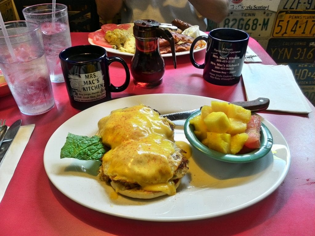 About an hour and a half into our drive, we stopped at Mrs. Mac’s Kitchen in Key Largo for breakfast. It’s a cute place serving very rich, down home food and a very good, if very sweet Key lime pie.