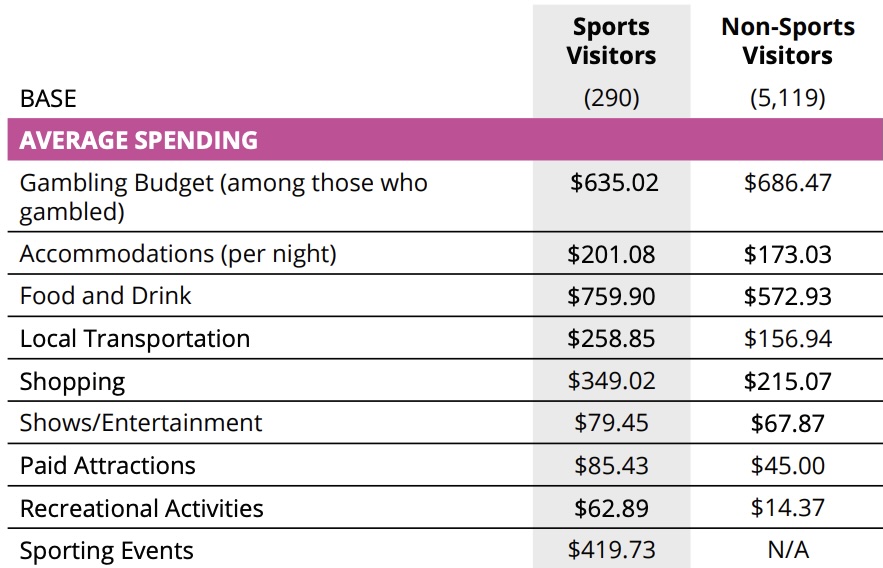 Non-sports visitors had a larger gambling budget than those who were in Las Vegas to watch a game. Sports fans are notoriously considered gamblers.